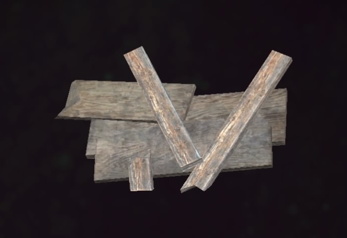 アイテム表記は「木片」。木材を含むC.A.M.P.用品の設置や、武防具の作製、料理などに用いる。