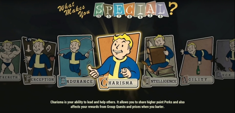 Charismaは他者を導き、助ける能力です。高いポイントのPerkを共有することができ、グループクエストの報酬や取引での価格に影響します。 チームを組んでいる仲間にも自分のPerkの効果を与えられる「Perk共有」に影響し、 CharismaのPerk |