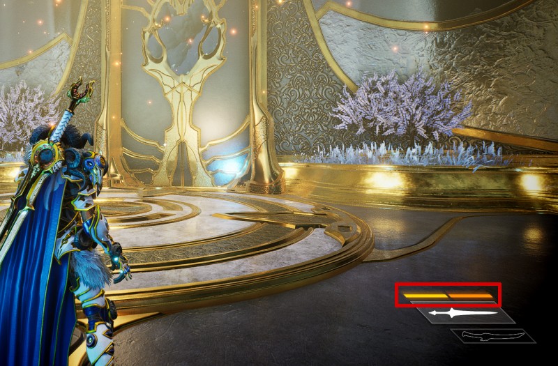 武器テクニックに関連するゲージは、画面右下にある武器アイコンの上に表示される。