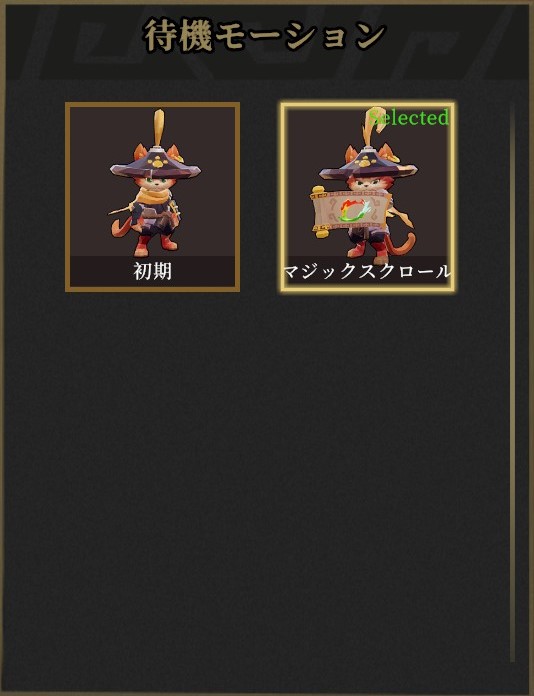 ヒーローの下の「待機モーション」をクリックすると変更できる。