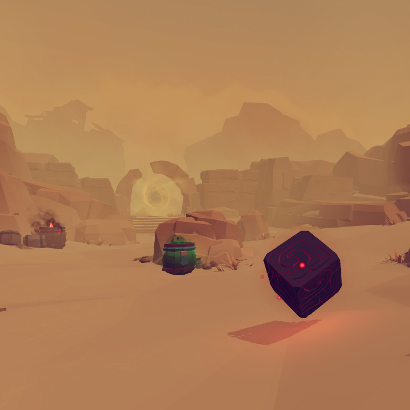立方体を調べると開始し、敵が現れ立方体を攻撃する。