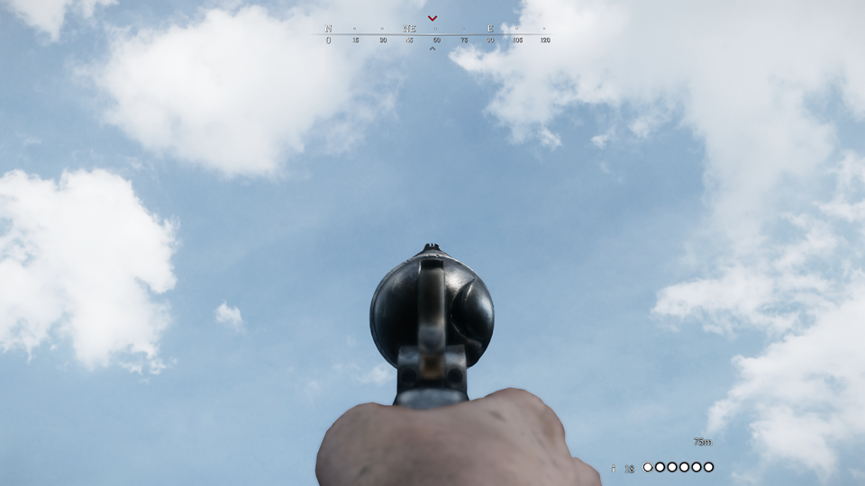 コールドウェル製シングルアクションリボルバー。リロードは遅いが、信頼性と精度に優れている。弾薬筒を発砲できるように改造が施されている。二丁拳銃が可能。
