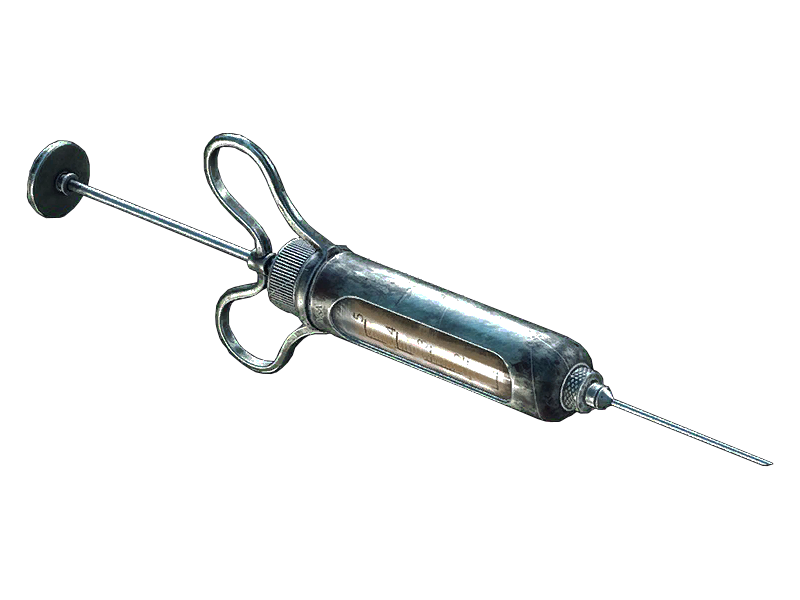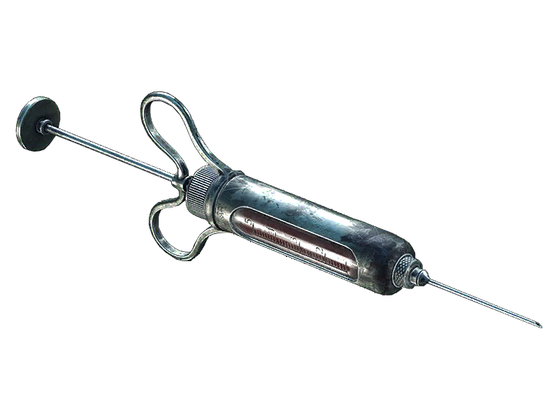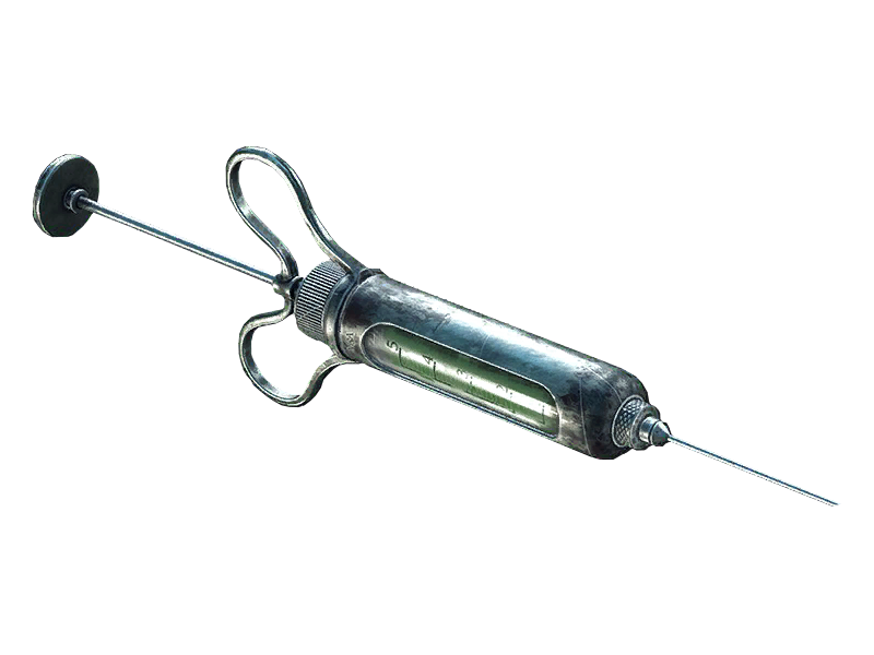 回復系の注射器。体力を回復するものとスタミナを回復するものがある。VitalityShot系は包帯よりも素早く使用できるため、必ず一本は持っていこう。仲間にも使うことができる。