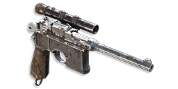 The German, prototype, semi-automatic pistol with a short scope to fully utilize the weapon's power at midrange. Cannot use a stripper clip to be reloaded.