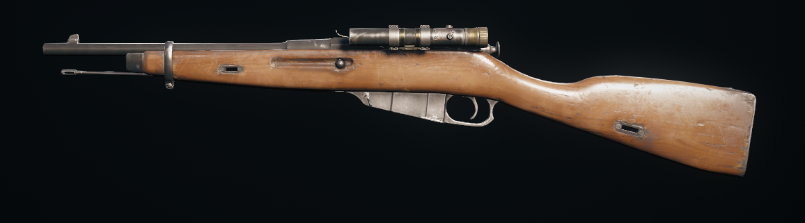 ロシア製ボルトアクションライフル。「Mosin-Nagant」を切り詰めたこの銃は、威力が減少し、有効範囲も短くなっているのにも関わらず、高い殺傷能力を誇っている。拡張銃身、銃床、中距離用照準器を取り付ける改造が施されている。