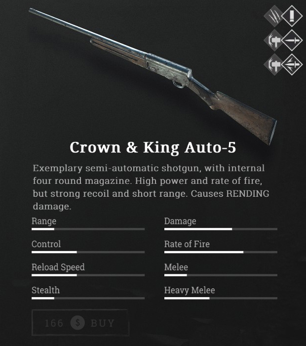 - 両手武器/Crown and King Auto-5 は削除されています。