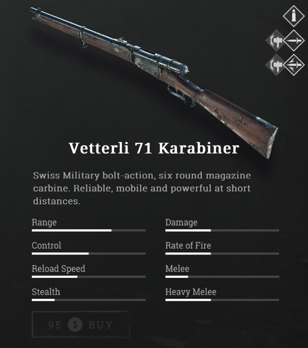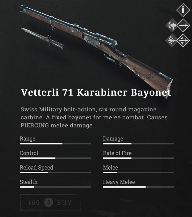 - 両手武器/Vetterli 71 Karabiner は削除されています。