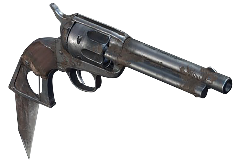 Iconic single-action six round revolver. Robust, powerful and accurate, a blade affixed to the grip gives this an edge up close.