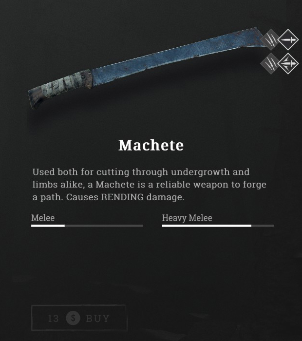 Used both for cutting through undergrowth and limbs alike, Machete is reliable weapon to forge a path.