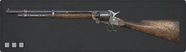 The LeMat Mark II's unique design that featured an extra shotgun barrel made it very effective in close quarters. This model transforms it into a rifle with a stock and extended barrel, improving its overall handling and power.