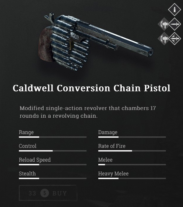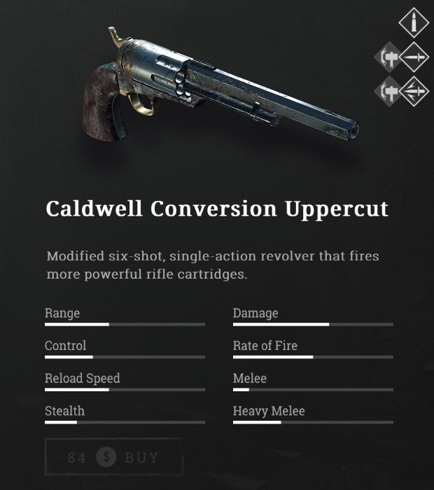 The Caldwell Conversion Pistol is a single-action six-shot revolver. While slow to reload, it's otherwise sturdy and reliable.