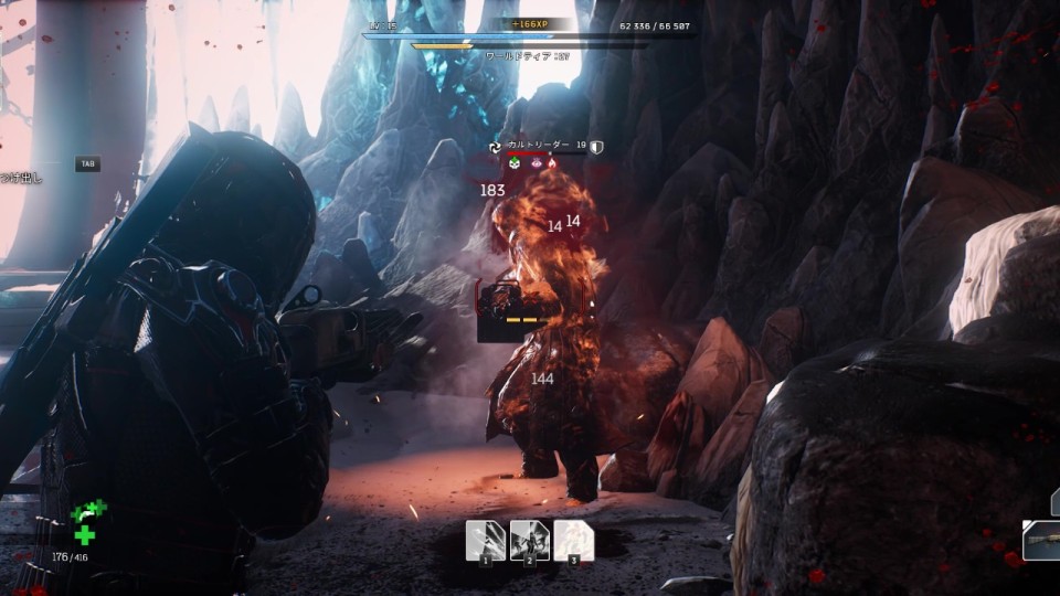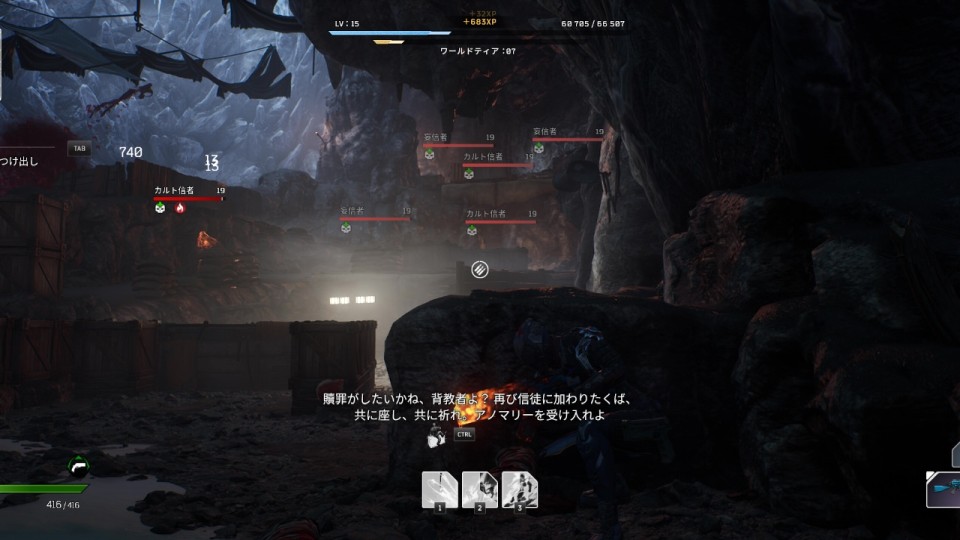 カルトリーダーのもとにたどり着くまではカルト信者 (中身はインサージェント) との戦闘になる。戦闘エリアは施設の入口前と洞窟の中で、特に洞窟の中の方は敵がかなり多く、レベルに合った装備がないと中々にキツイ。突っ込んでくる熱狂者や狙撃してくる妄信者など危険度の高い敵を優先的に排除し、安全を確保しながら進むようにしよう。また、入口前ではエリートアノマリーの使者、洞窟内では主の付き人が出現する。