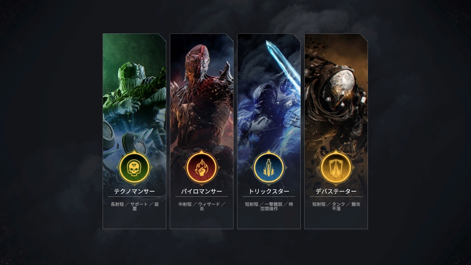 - 特定のレベルに到達するごとに、各クラス固有のスキルがアンロックされる。スキルは各クラスに8つあり、その中から3つを選んでセットすることができる。