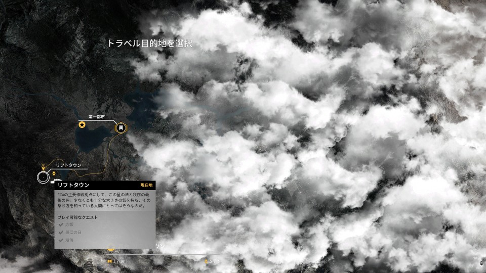 マップ間を移動する場合は、キャンプにいるヤコブに話しかけてワールドマップを開く必要がある。また、マップ内のエリア間をファストトラベルする場合、設置されているバナーをインタラクトする必要がある。