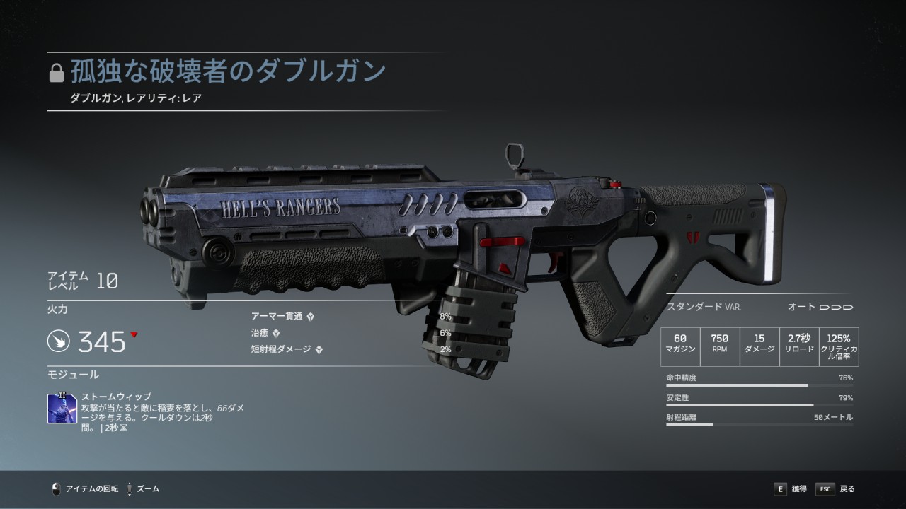 孤独な破壊者のダブルガンは、DLC「ヘルズ・レンジャーズ・パック」に含まれるレアダブルガンで、デフォルトのバリエーションはスタンダード。