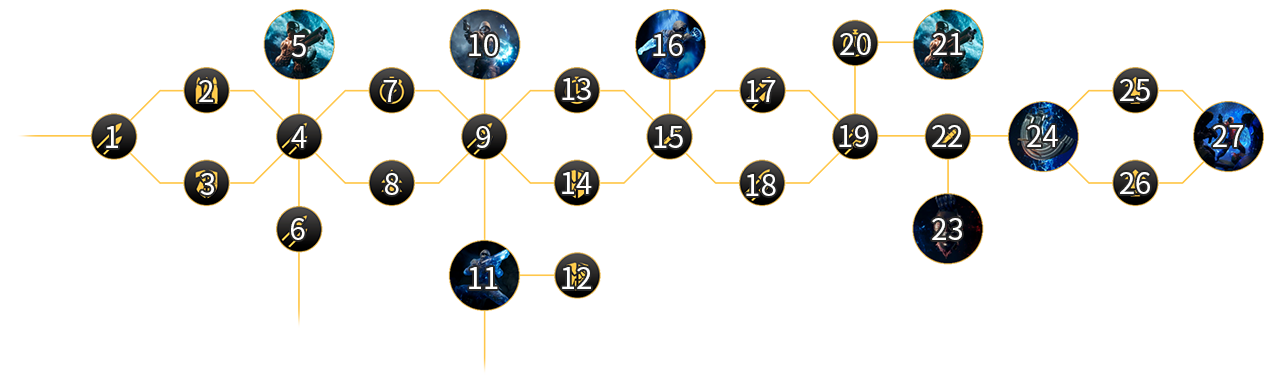 | 20 | 均衡 | 移動属性であるスキルのクールダウンを15%短縮する。 影響を受けるスキル: | |