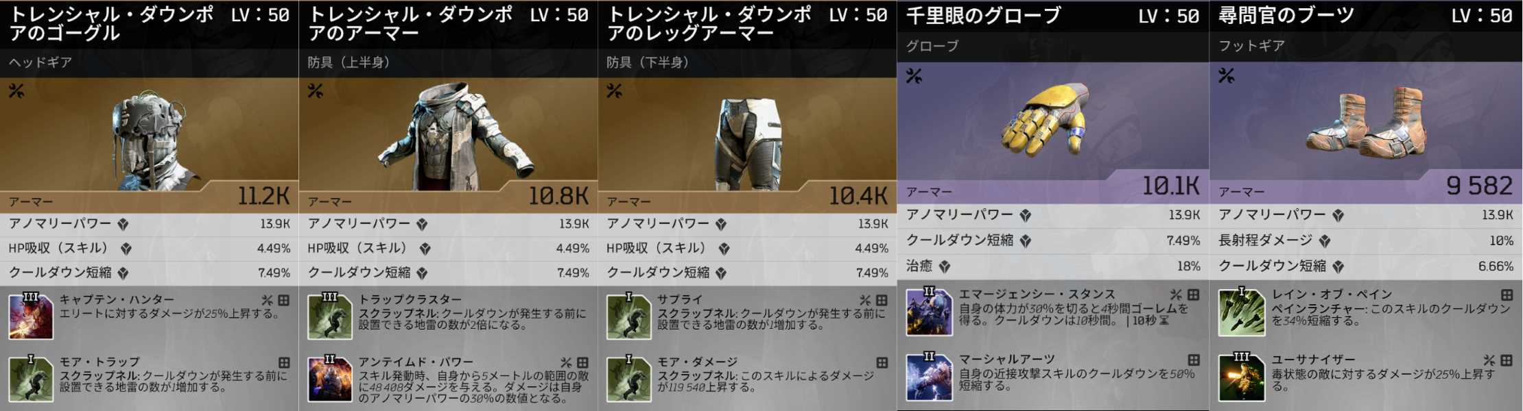 防具特性はアノマリーパワーとクールダウン短縮が必須、HP吸収またはステータスパワーが付いていれば尚良いです。