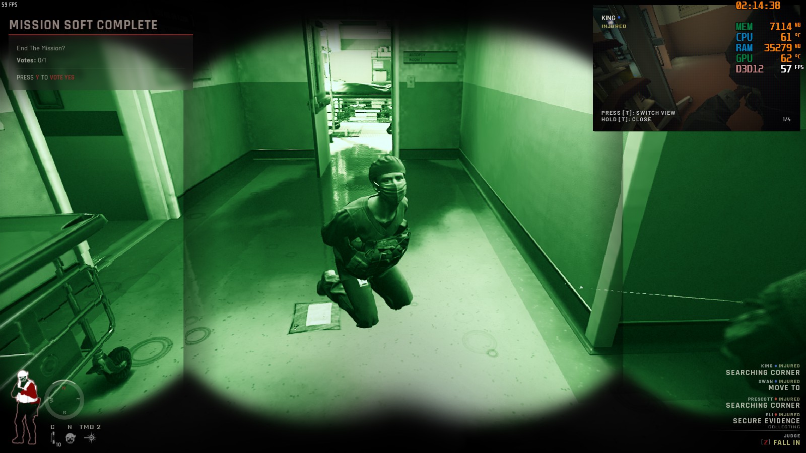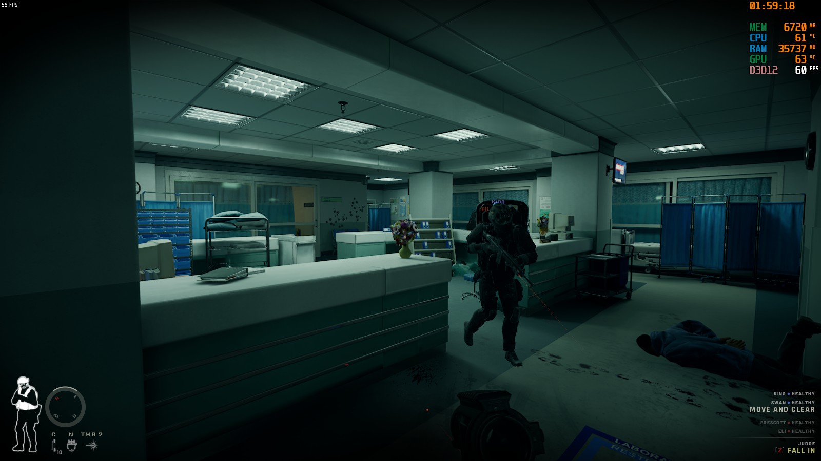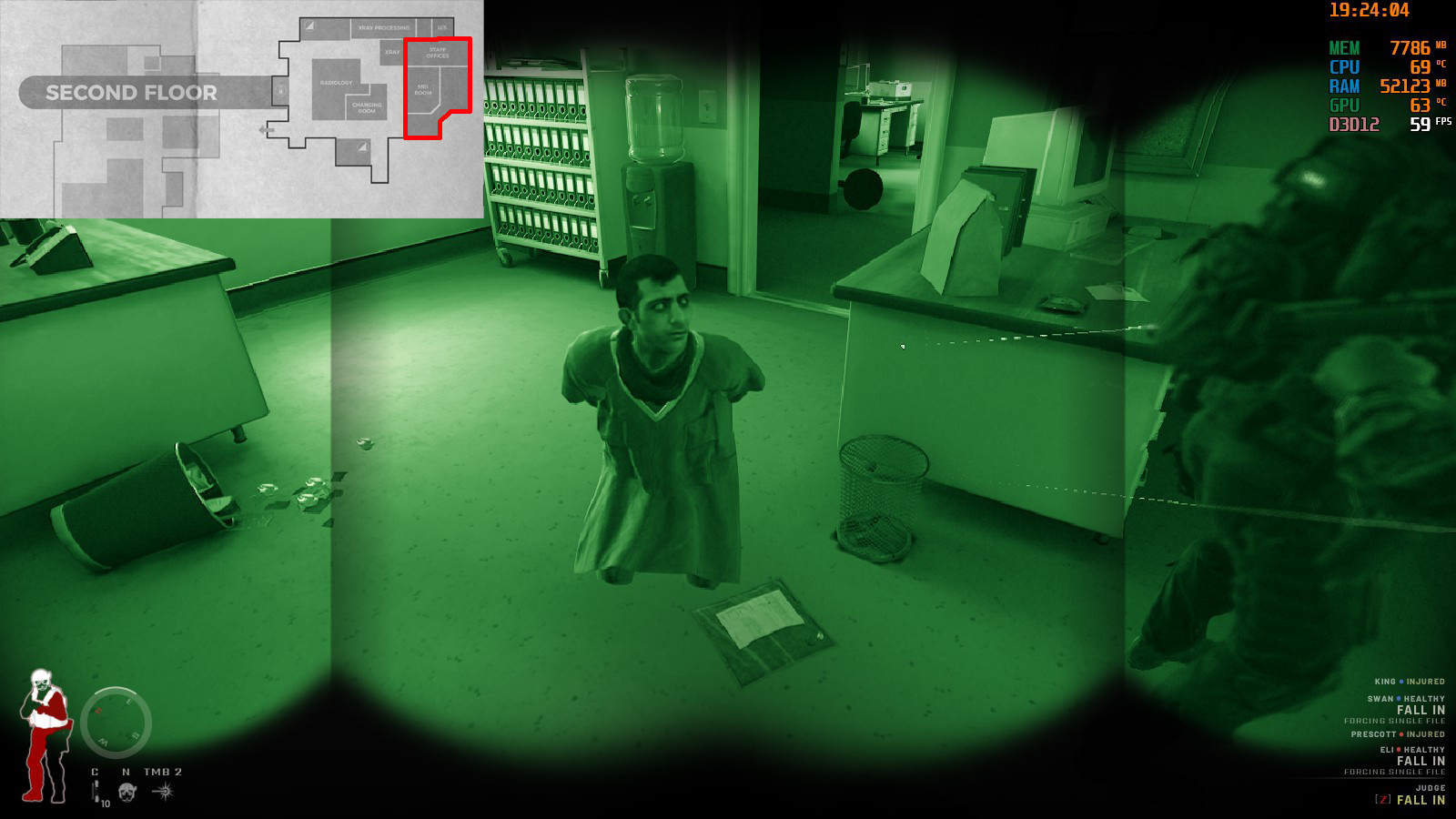 2FのICU付近を突入する場合は非致死性武器に切り替える等して射殺しないように気をつけよう。