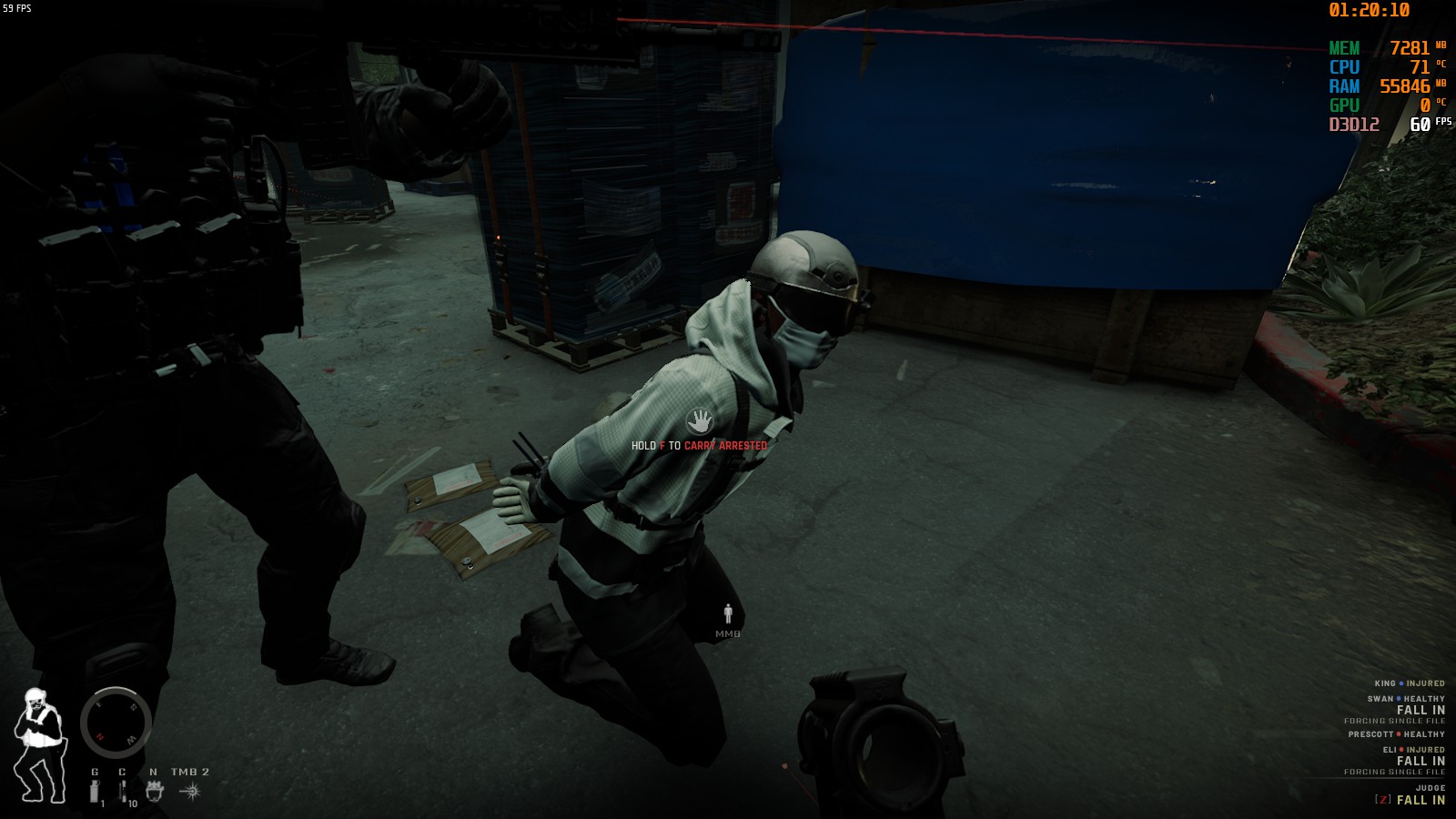 なお、シングルで「SEARCH AND SECURE」の指示で味方AIが勝手に縛りに行ってくれるが、鍵がかかっている部屋や走り回ってどこかへ行ってNPCですら見つけてくれない事があるので注意しよう。
