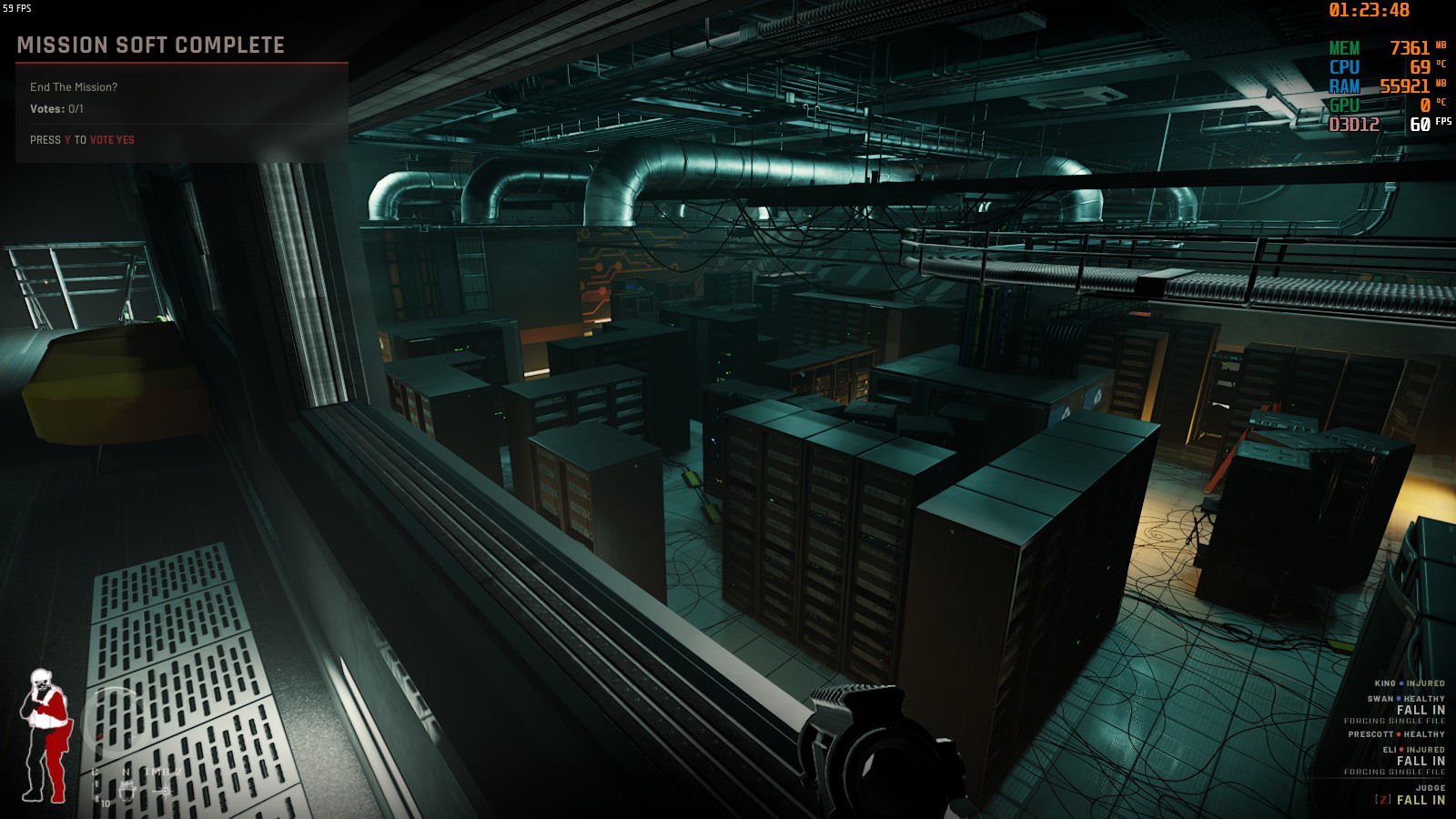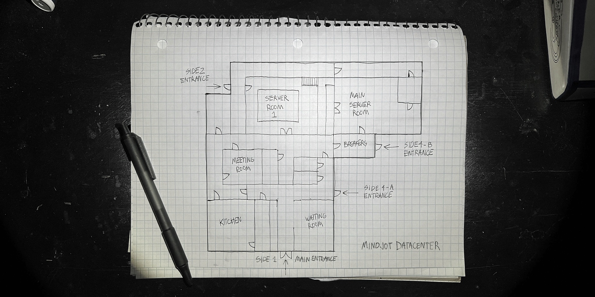 Team Lead: Alright, listen up. We’ve got a warrant service on a Mindjot Datacenter in Colina Beach. It’s inland, pretty dusty, it’s also pretty dim outside. The facility is located on 52 East Temple Hills Street, and we’ve got multiple entrances for this one. Side 1 will lead us into the lobby, side 2 contains an access doorway, and side 4 has a loading bay entrance that leads into the data storage areas. An element on-scene has also determined that there’s a possible entrance on the rooftop that leads down into a second level. Now, we’re dealing with a lot of expensive hardware in the structure. As you all know, Mindjot is on the down-slope, so we don’t expect much recourse if shit gets broken, but we wanna be mindful of property damage. It will also limit the capabilities of our cyber crime teams if they have to work with a bunch of destroyed drives.