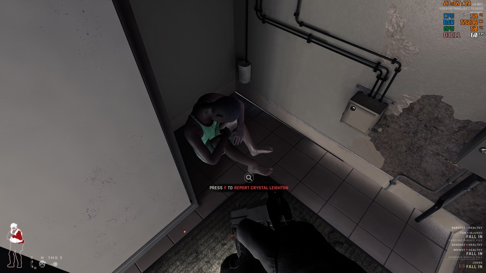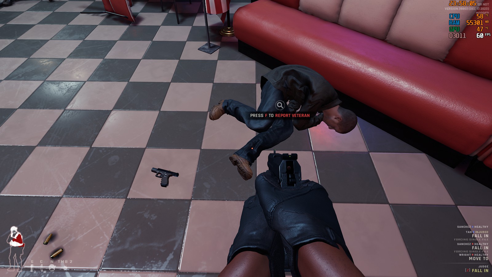 全員無力化した時点でこの項目は完了となるが、致死性武器によりダウンさせた場合でも死んだふりをしている者がいると制圧判定とならないため、射殺した場合でもしっかりと縛ったほうが良い。