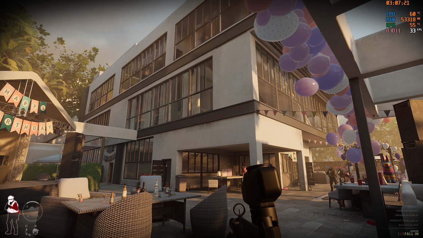 と住むには良さそうだが、本ミッションではかなりの難条件で庭の敵に視認されると一方的に撃ちまくられるし、認識されると回り込みされて後ろから撃たれたり。