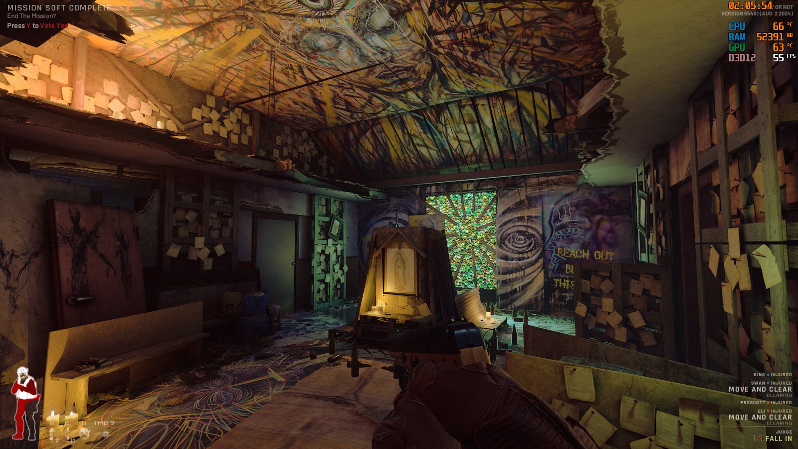 2階の薬物祭壇のあたりを制圧した時点で全て完了すれば5分以内で終わっているはず。