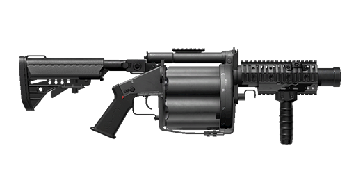 A rotary grenade launcher originally made for military use with high-explosive ammunition, it has found its use with Los Suenos' riot control units and SWAT teams.