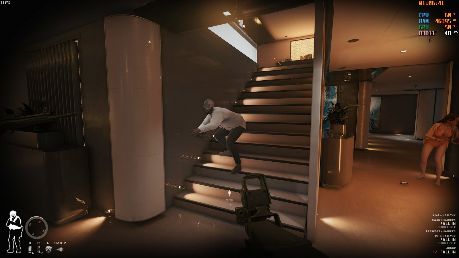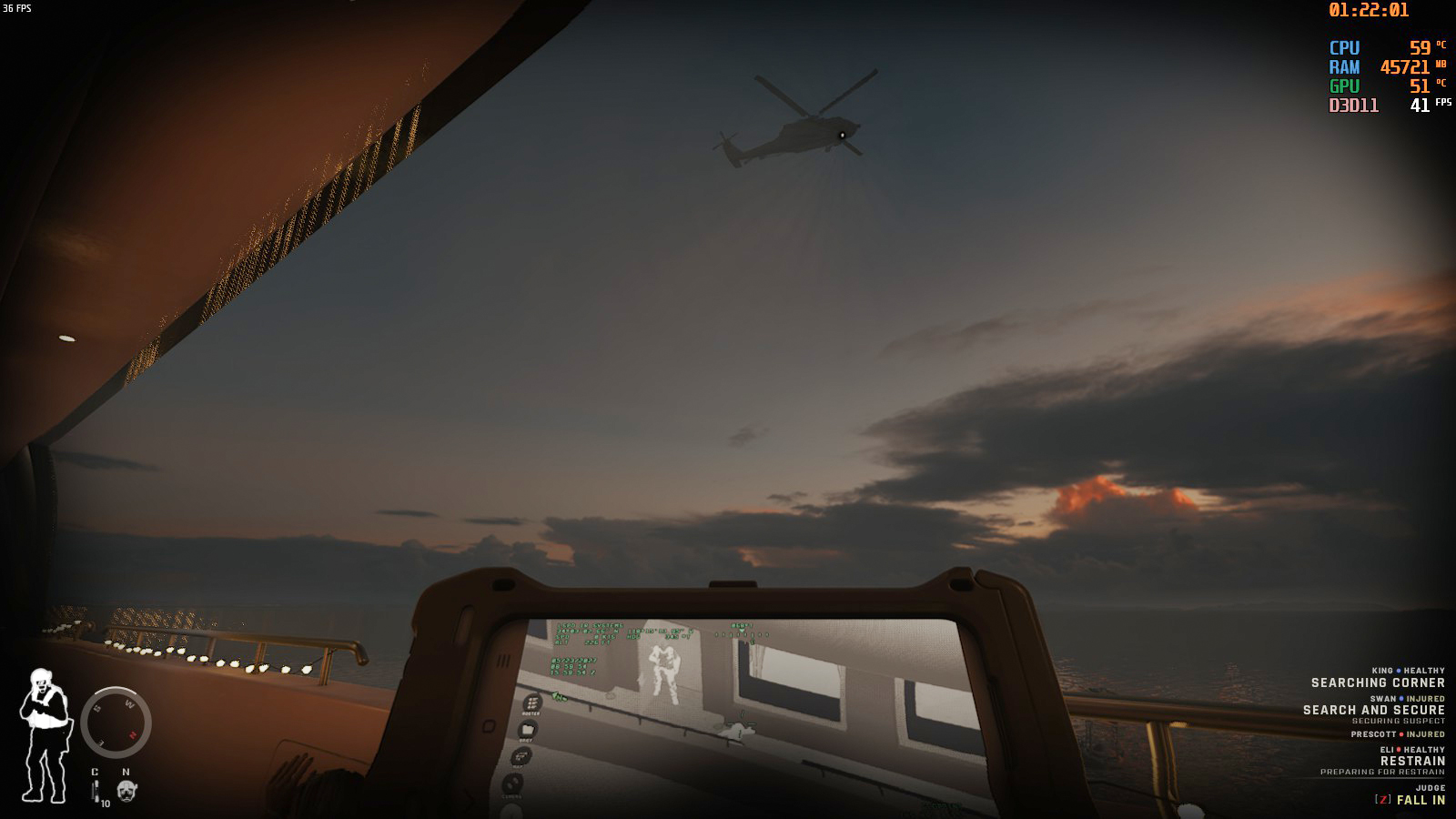 なお、シングルで「SEARCH AND SECURE」の指示で味方AIが勝手に縛りに行ってくれるが、鍵がかかっている部屋や走り回ってどこかへ行ってNPCですら見つけてくれない事があるので注意しよう。