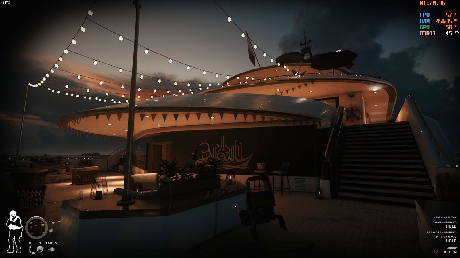 その次がUpper Deckで、アクセスするには上下の階段を使う必要があり高確率で容疑者がいる。撃たれやすいので気をつけよう。ちなみにUpper Deckで開始するとこの最後尾からはじまる。