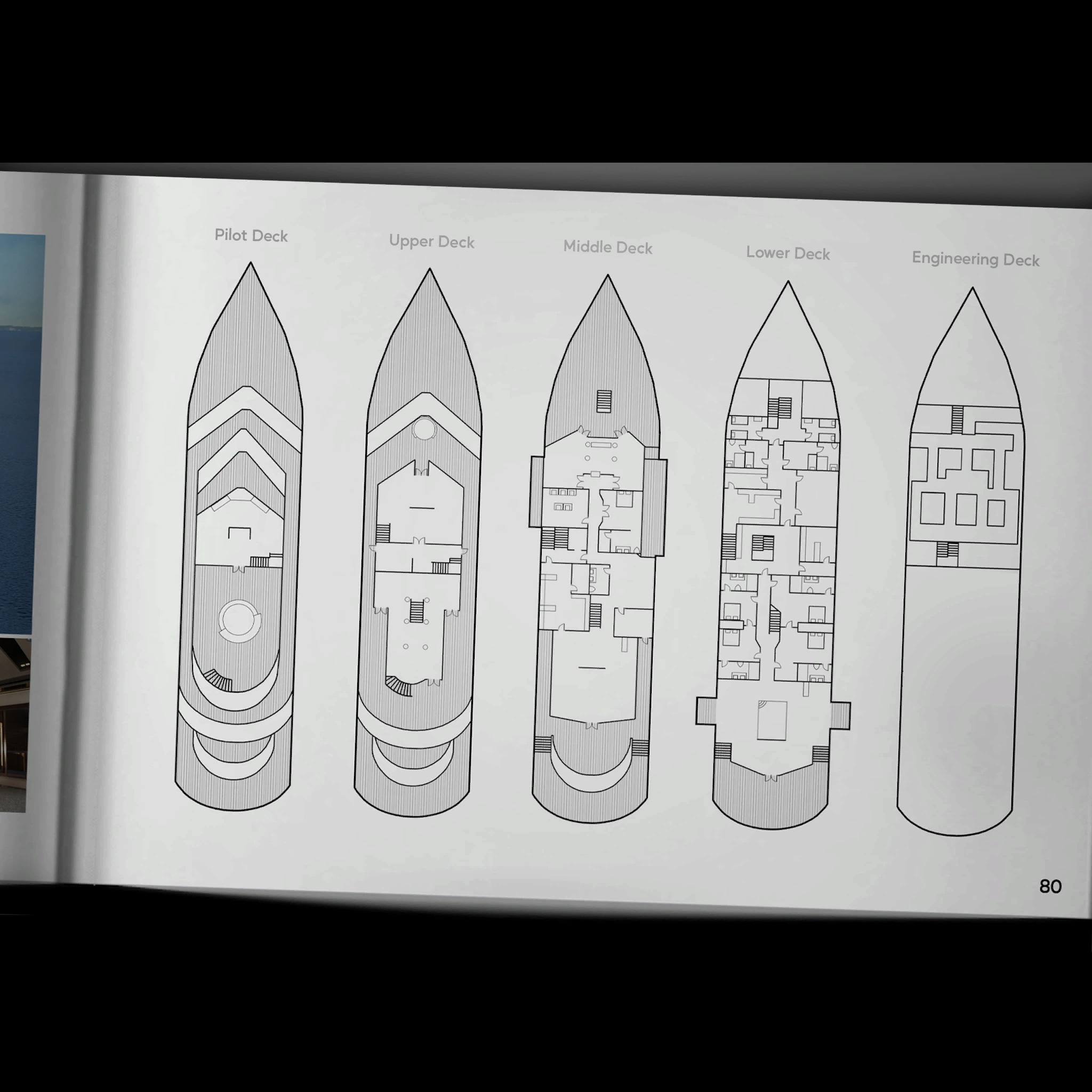 一番左から最上階のPilot Deckで運転席とパーティー会場が設置されている。Sun Deckで開始するとこの最後尾からはじまる。