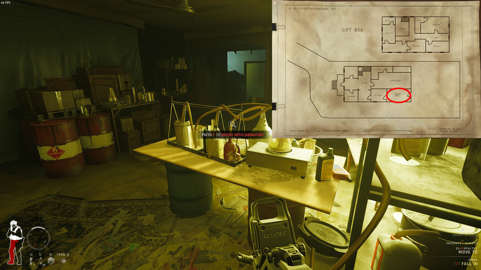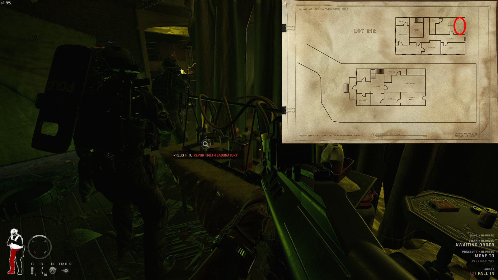 Team Lead: Gear up, boys; our detectives just hit the jackpot following a new lead for methamphetamine production in 213 Park and need some door kickers for the job. They booked this tweaking gangbanger for shooting up a 4U station the other day. The fool had a note in his pocket all about this meth lab in 213 Park. He was planning on spending his earnings from the robbery up there.