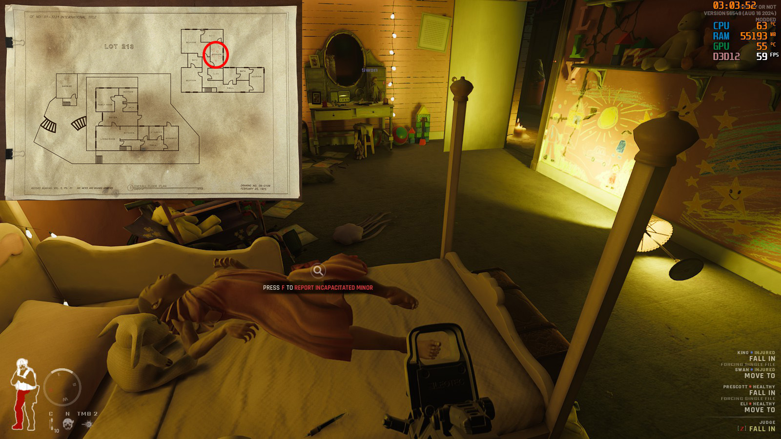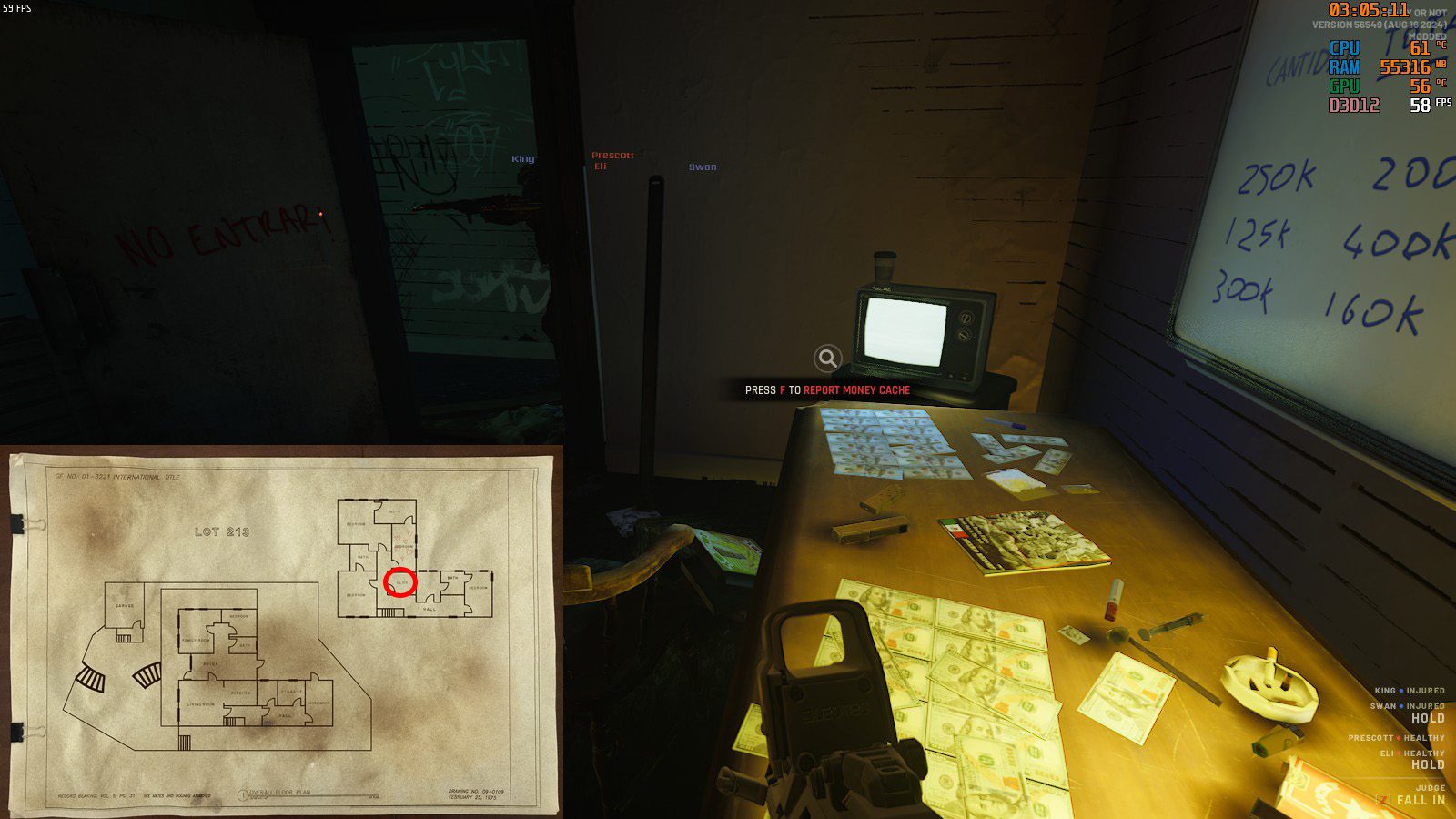 部屋が多く、敵が移動しまくるのでドアウェッジによる移動制限と安置確保は有効な手段。