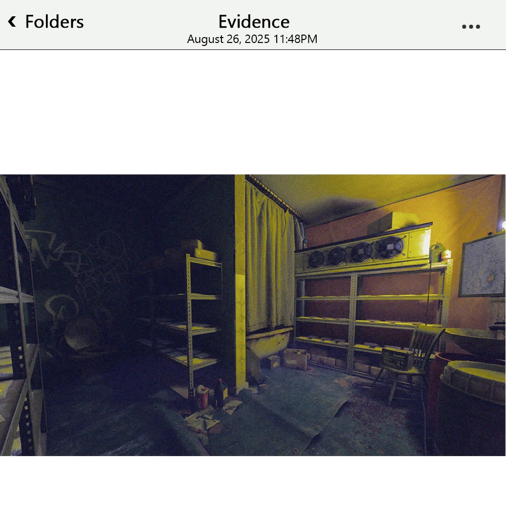 Reece: Right, sorry. The house. This is a different one. It’s the lab. Well, the lab is underground in his hidden garage. They’re cooking all the time down there. Then, they open for business at night. Direct visits come late at night. You know, the bigger clients. You know what I’m saying? I was in the attic. It’s where she used to live. Now it’s where they take the people they need information from. I don’t know what happened or why they left. Maybe I was dead. Maybe I was resurrected for a second chance. Fuck if I know. But I was alive and alone.