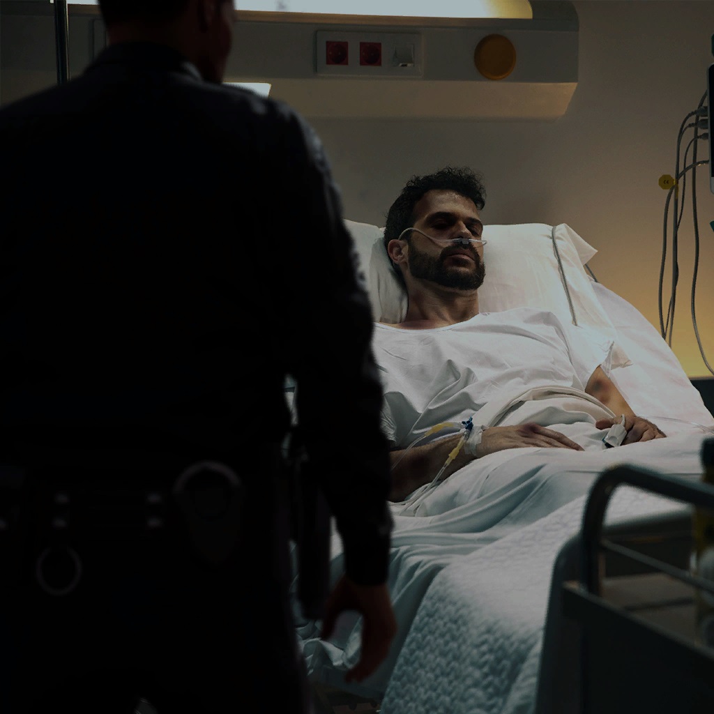 ![]() | リースの写真 リース・ヘインズが病院のベッドで警官と話しているところ。写真は現場の巡査部長が撮影した。 |