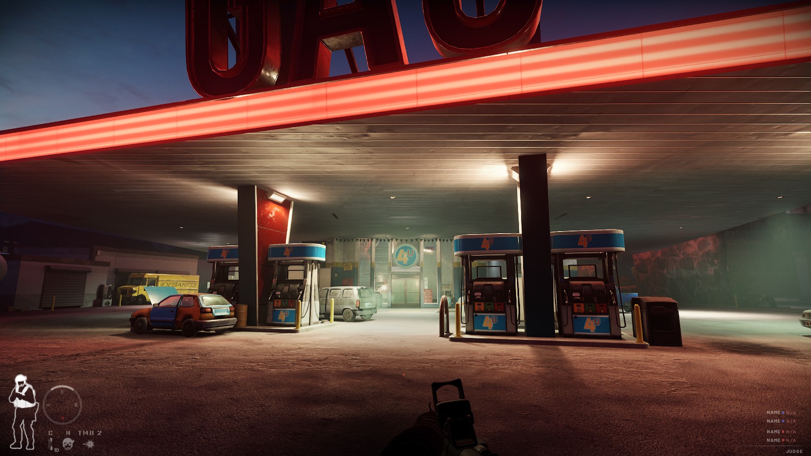 ガソリンスタンドではあるが、コンビニやレストランが併設された複合施設となっており証明はしっかり点灯しているためナイトビジョン等は無くても視界は良好である。