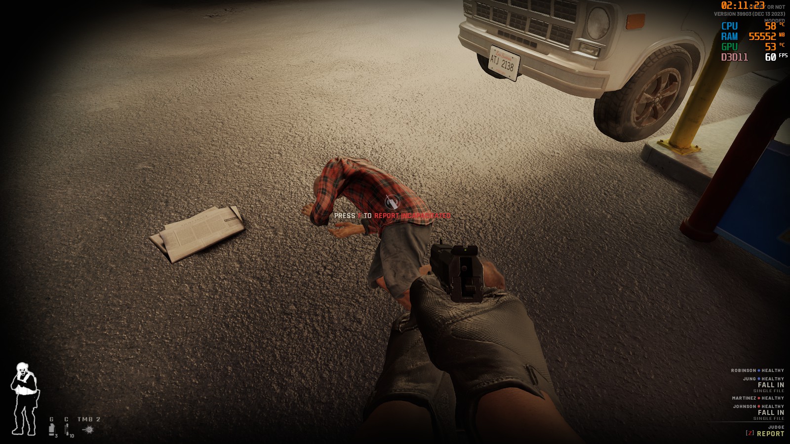 全員無力化した時点でこの項目は完了となるが、致死性武器によりダウンさせた場合でも死んだふりをしている者がいると制圧判定とならないため、射殺した場合でもしっかりと縛ったほうが良い。