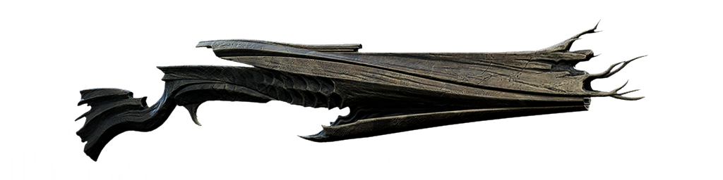 | "Before the Basha rebelled, they harnessed the power of the Kel-Hur into weapons, but it was Od Var, shrewdest of the weaponsmiths, who thought to use Black Sun Dust as both power source and projectile." バシャが反乱を起こす以前、彼らはケル・ハーの力を武器に利用していたが、黒い太陽の塵を動力源と弾に使おうと考えたのは、切れ者の武器職人オド・バーだった。 |
