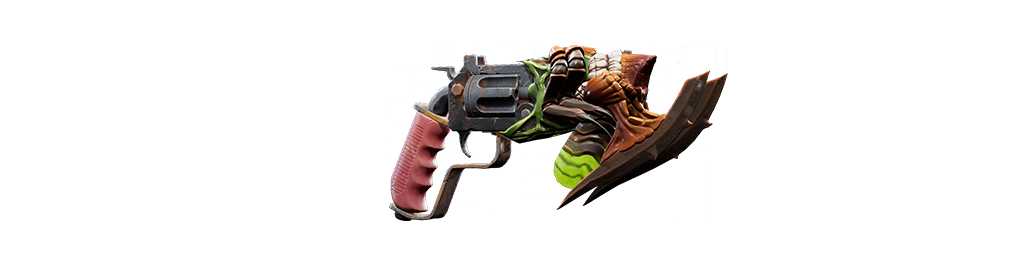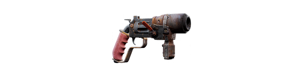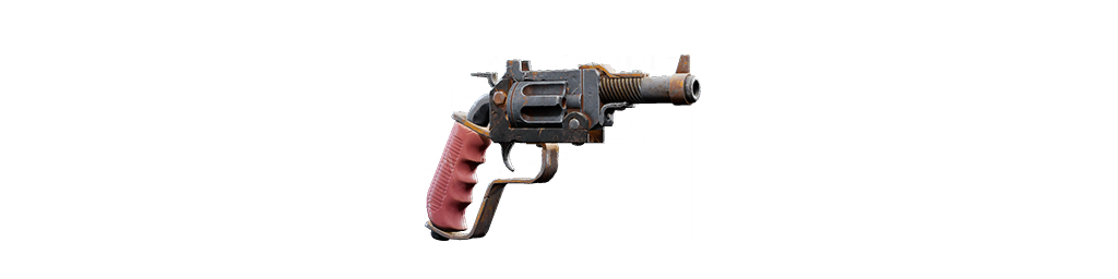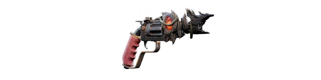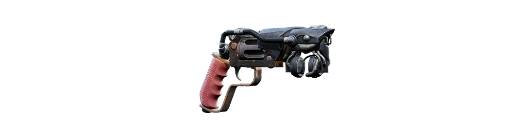 | 6発装填シリンダーの堅牢な作りをした、反動が強く精度の高いハンドガン。リロード時は弾を1発ずつ装填する。 |