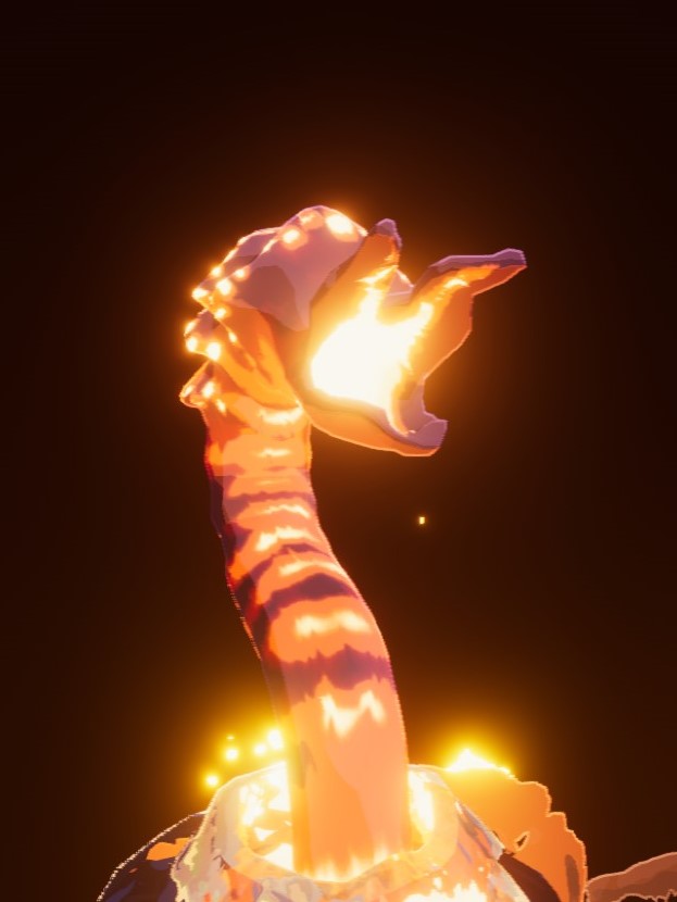 地上に顔を出した後は、マグマを発射し着弾した場所にミニ マッシュラムを彷彿させるダメージエリアを生成し、エリア内では継続ダメージと数秒の炎上デバフを受ける。ミニ マッシュラムと異なり、地上だけでなく球状の範囲となっており、