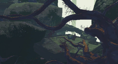巨大な木々が辺りに散乱している沼地マップ。
