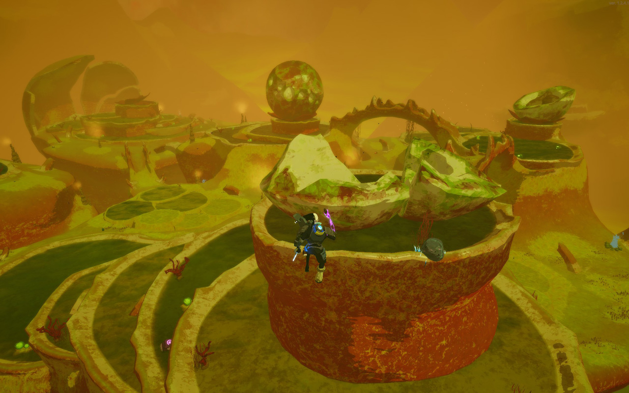 橋やジャンプ台が適度に配置されているが、棚田も峡谷もそこそこの高さがあり、ここに来るまでにジャンプ力を強化できていないと探検は困難だろう。似た地形が並んでいるため迷子にも注意。