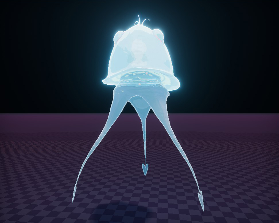 空に浮かぶ巨大なクラゲ型ボスモンスター。
