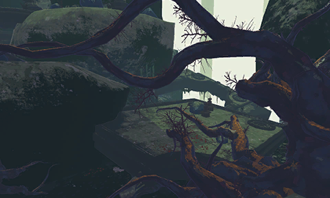 朽ちた木や岩が雑然と配置されており、マップの把握が難しい。