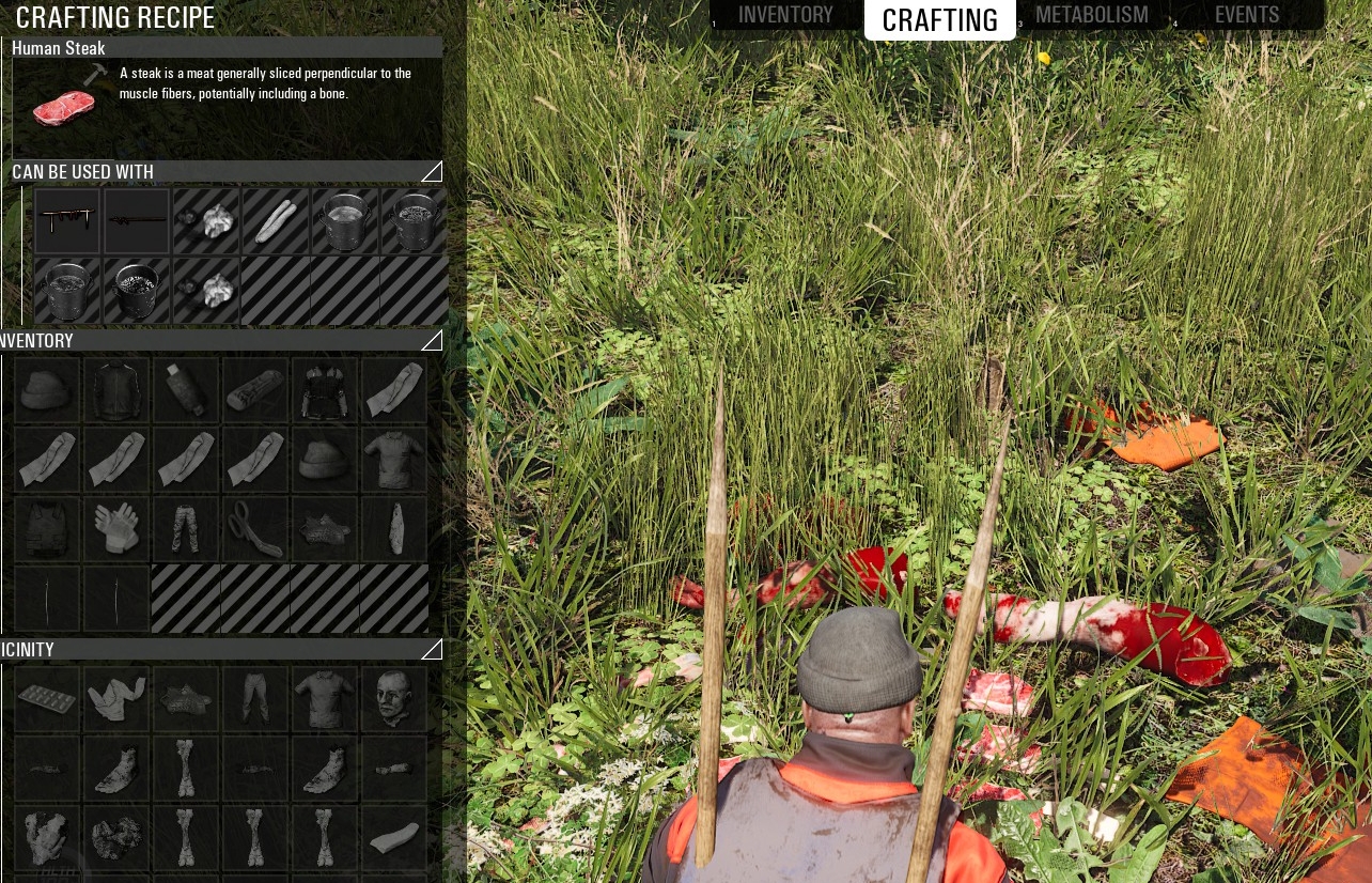 分解した胴体などはHuman Steak(人肉)、Fat(脂肪)、Bone(骨)の3つに分かれ、Human Steakを焼いて食べれば食料には困らない (ただしこればかり食べると栄養が偏る)