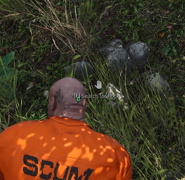- 照準が手のひらのマークに変わり"Search for Rocks"と表示されたらインタラクトする
