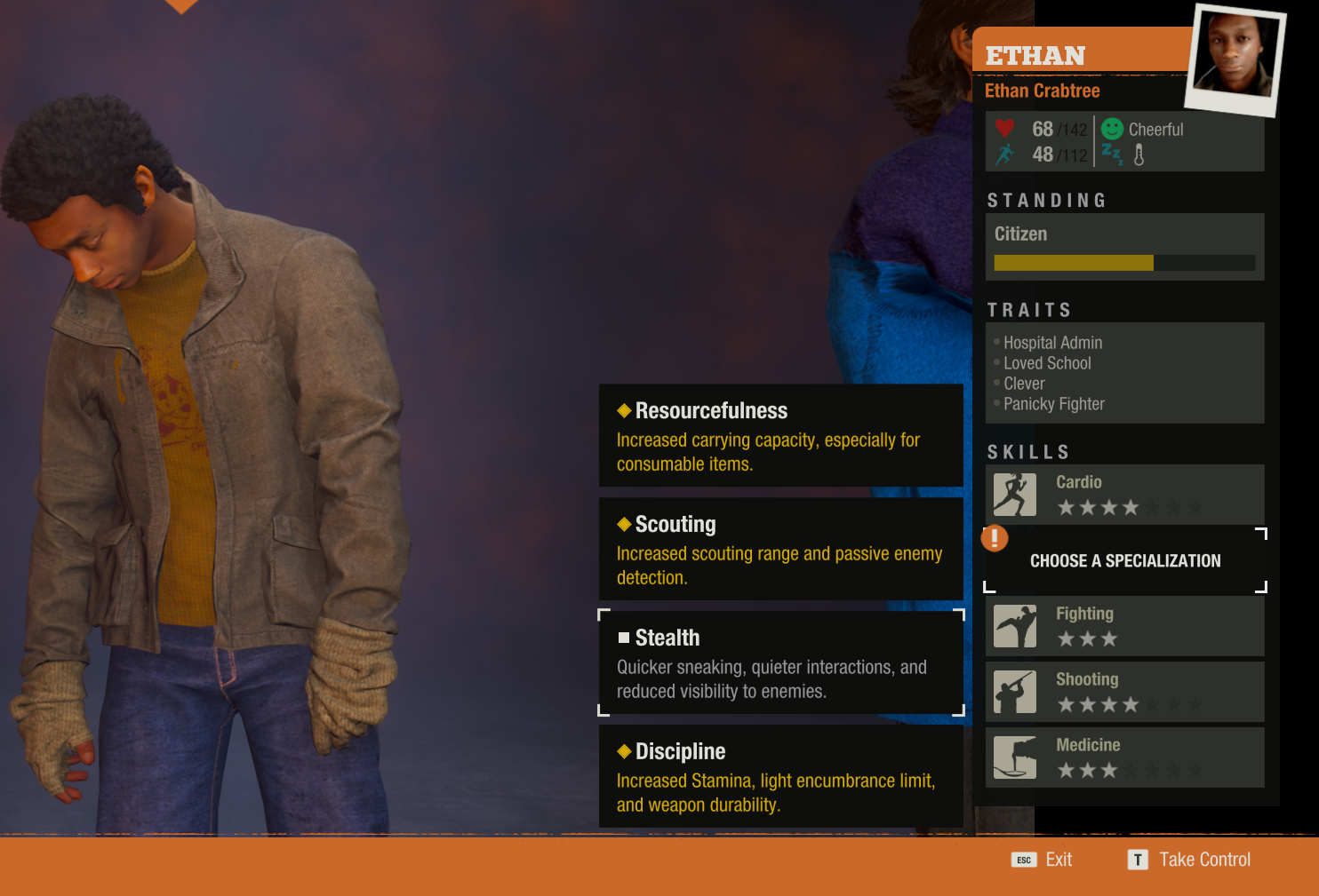| ヘルスが増加する トラウマの進行が遅くなる スラムアタック(突進からの担ぎ上げ)が使えるようになる [LShift]+[LClick]でスラムアタック レベルが最大になると負傷が50%軽減される |