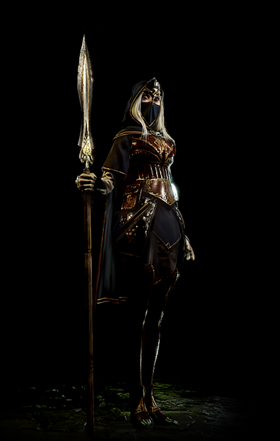 As the Handmaiden, Kerillian favors melee combat, using the reach of her spears to deliver death to her foes before they are in range to retaliate. Should an enemy close the distance, the armour of the Handmaiden is able to withstand a barrage of cuts, allowing Kerillian to retaliate with impunity.