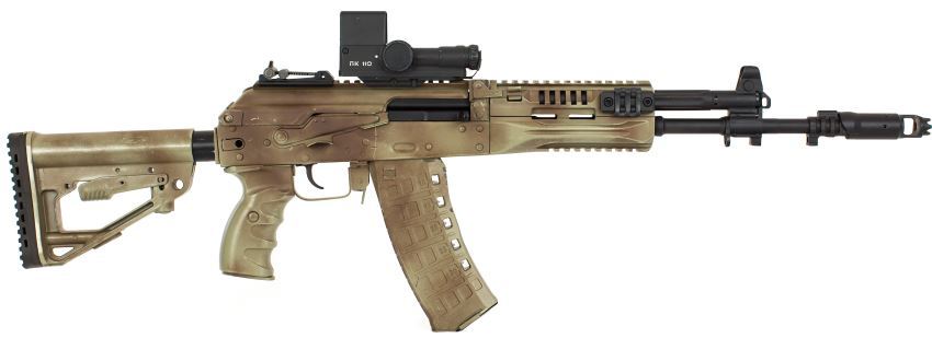 AK-15は、2011年にロシアで開発されたオートマチックライフルで、5.56mm弾を使用するAK-12の後継版。7.62×39mm弾を使用する。メカ上部にはピカニティーレイルが装備されており、光学機器などの利用も可能。折り畳みストックが標準装備されている。