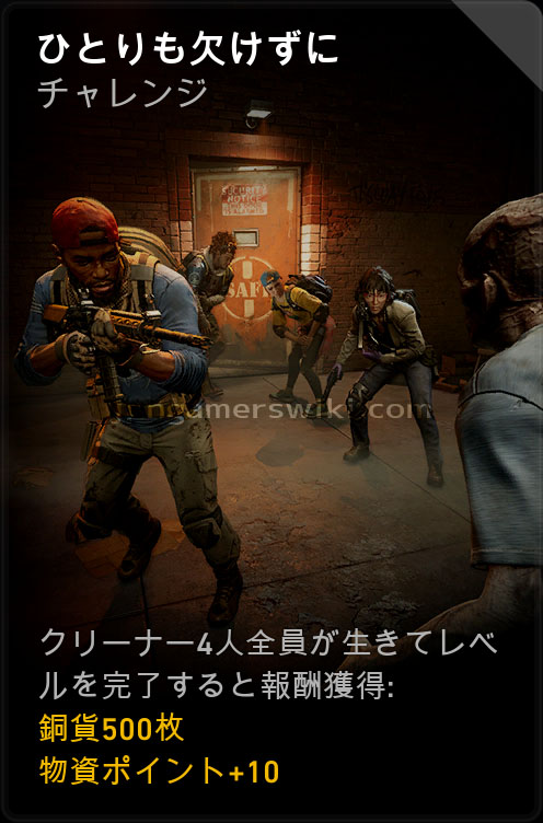 クリーナー4人全員が生きてレベルを完了すると報酬獲得: